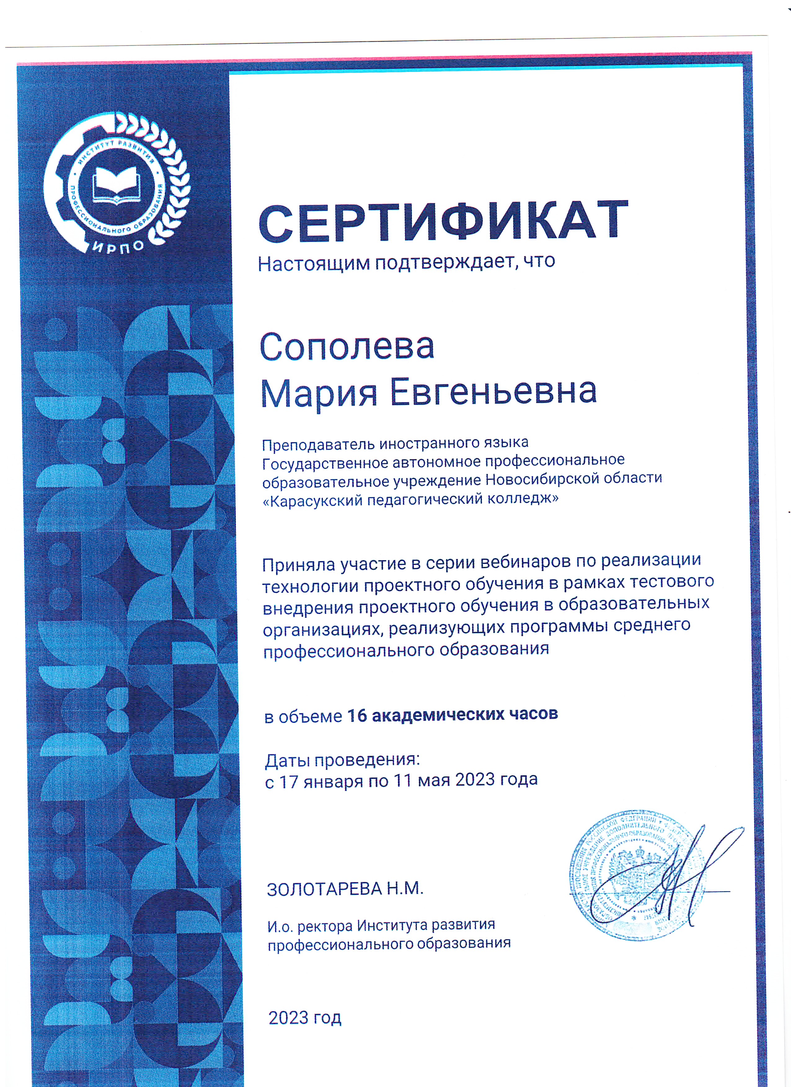 Сополева Мария Евгеньевна преподаватель иностранных языков